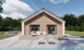 4 oda, açık mutfak, yemek alanı, banyo, misafir tuvaleti, koridor, vestiyer, giyinme odası ve teknik odadan oluşan bu ev. 22° veya 45° çatı eğimine sahiptir.
